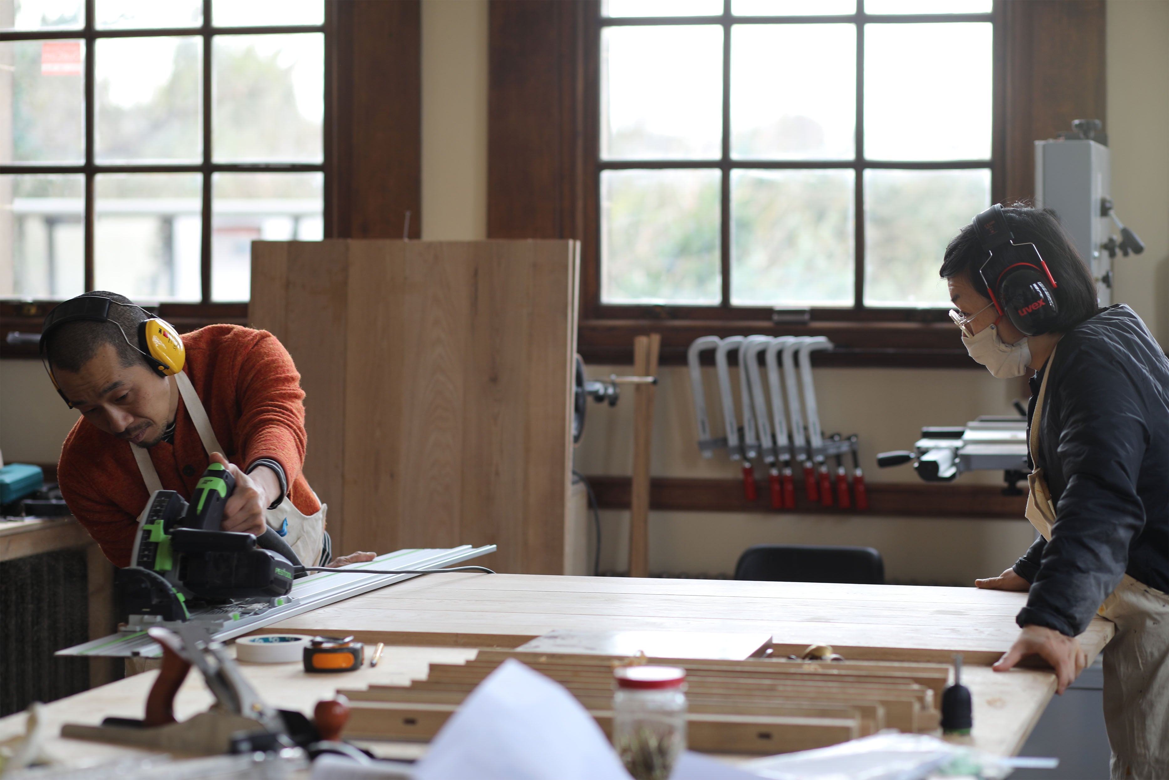 led to a project by artist Sara Kelly that incorporated table loom production using reclaimed timber